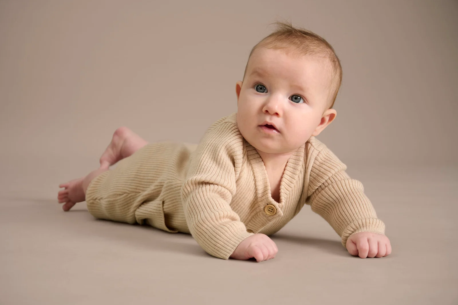 Salopetă din bumbac cu fermoar – urechi iepuraș galben pai