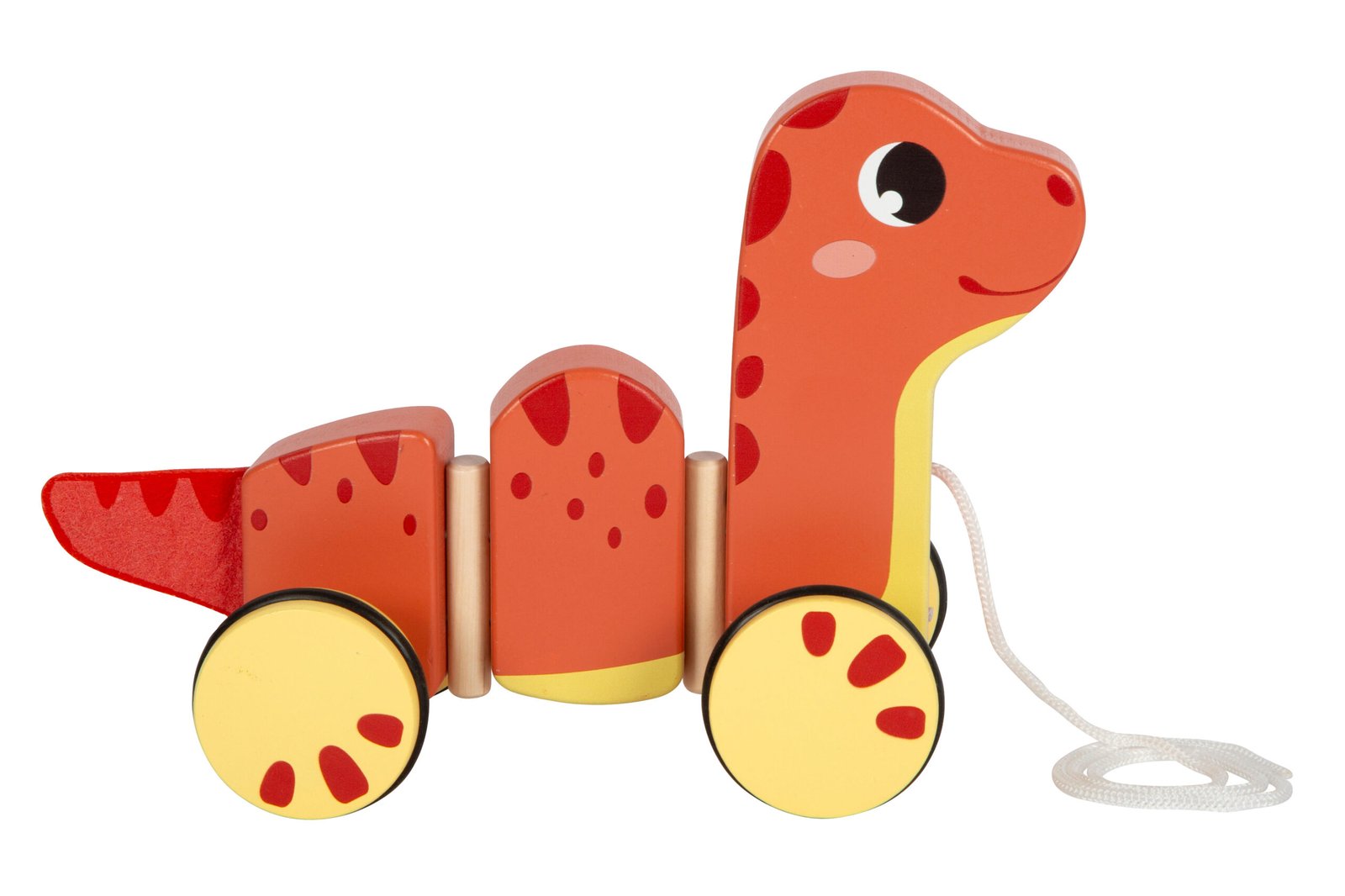 Când copiii devin mobili și încep să facă primii pași, acest drăguț dinozaur de tractat, fabricat din lemn certificat FSC® 100%, prinde viață. Micul dinozaur pe roți poate fi ușor tras de curea și, datorită corpului articulat din trei părți, arată frumos chiar și în colțurile înguste! Roțile cauciucate permit premergătorului să se miște liniștit și fără a deteriora podeaua. Dinozaurul din lemn de tractat nu numai că promovează abilitățile motorii și mobilitatea, dar stimulează și creativitatea și imaginația copiilor.