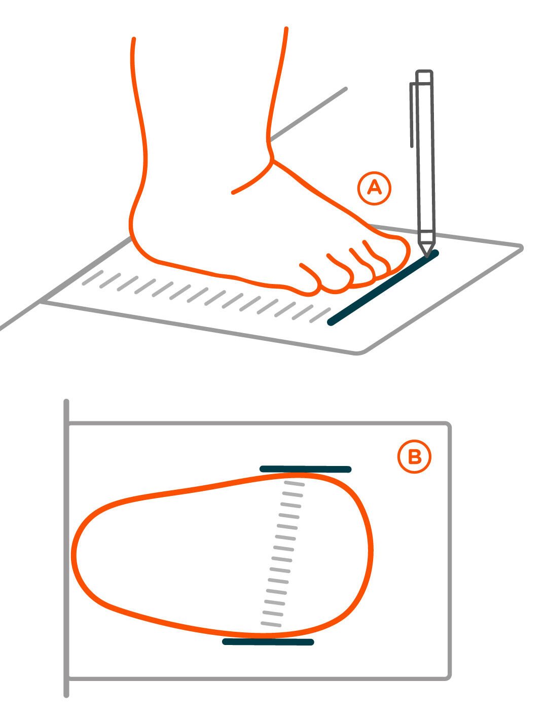 Pentru a alege marimea potrivita masurati talpa copilului conform instructiunilor
