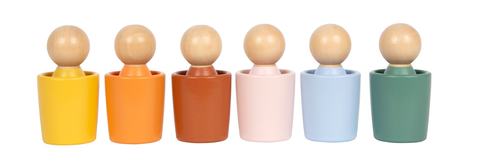 Cu șase pahare colorate și șase figurine din lemn asortate, copiii învață în mod jucăuș potrivirea culorilor, își antrenează motricitatea fină și coordonarea mână-ochi și își dezvoltă înțelegerea ordinii și structurii. Fie că sortează, stivuiesc sau se joacă liber – paharele de sortare cu figurine invită la descoperirea creativă și la învățare.