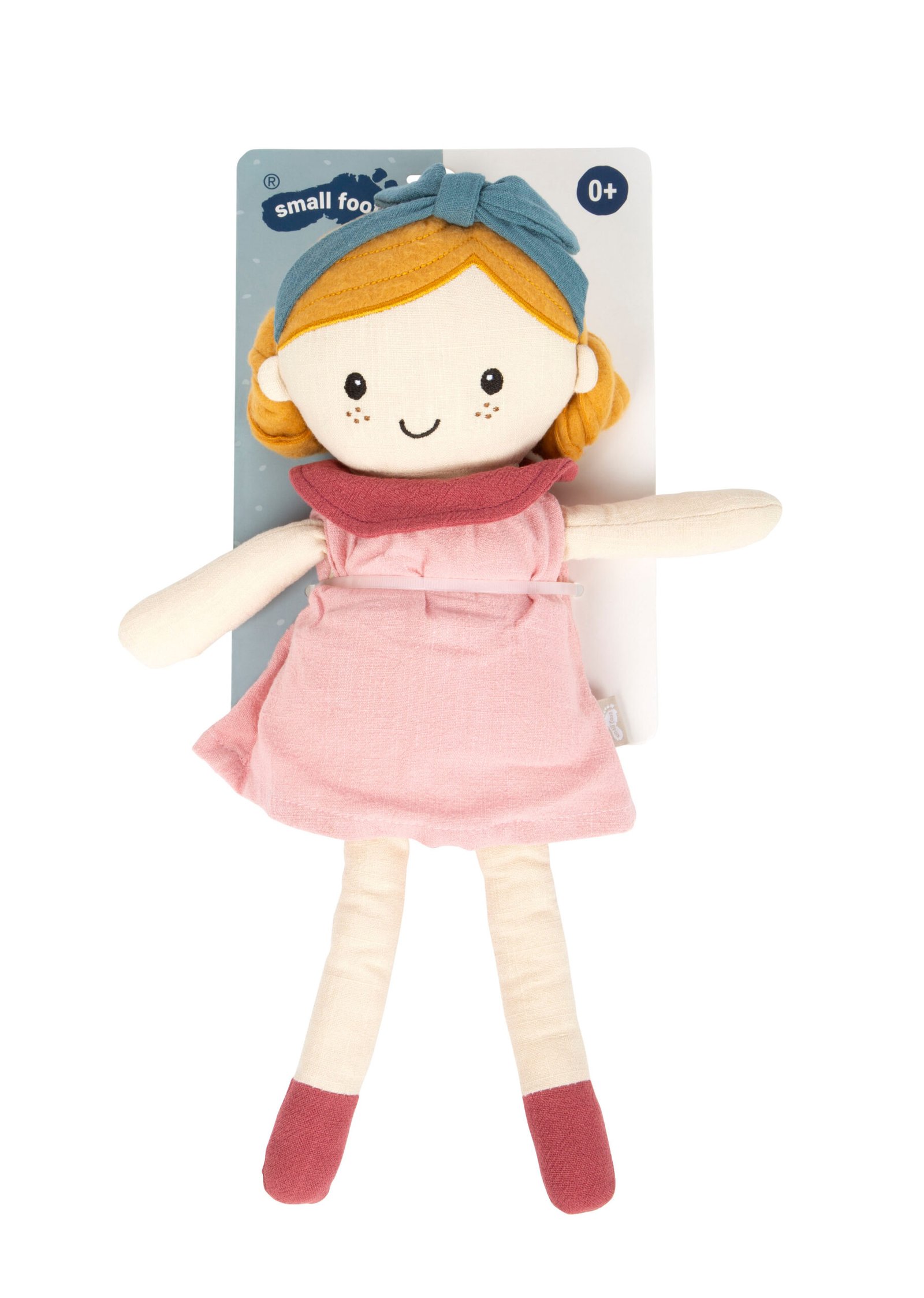 Drăgălașa păpușă de cârpă „Lina” este o companionă loială în viața de zi cu zi a copiilor – drăgălașă, prietenoasă și mereu gata pentru noi idei de joacă. Cu fața ei veselă, rochia roz și bentița în coafură, „Lina” nu numai că arată adorabil, dar oferă și un farmec suplimentar de joacă datorită rochiței sale detașabile.