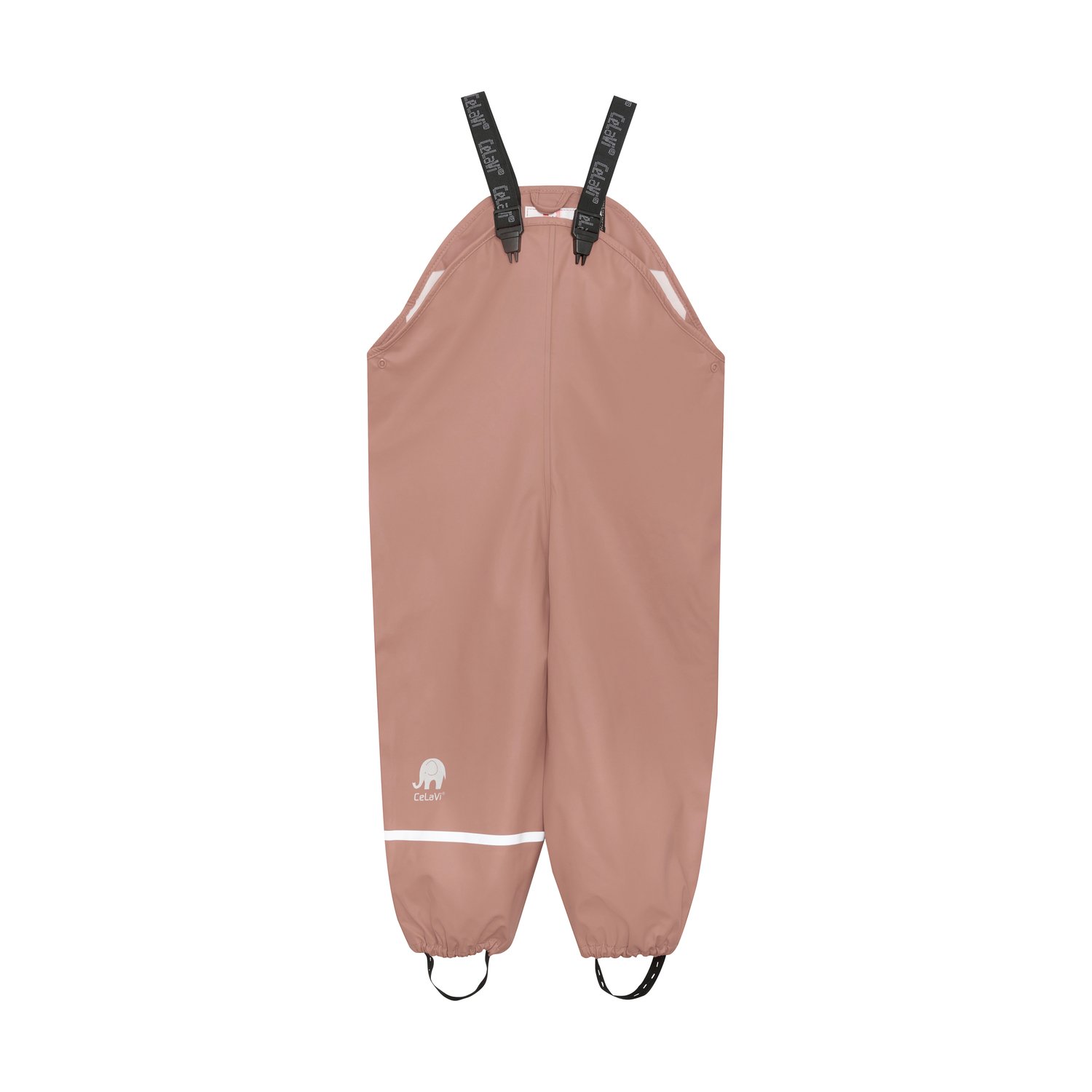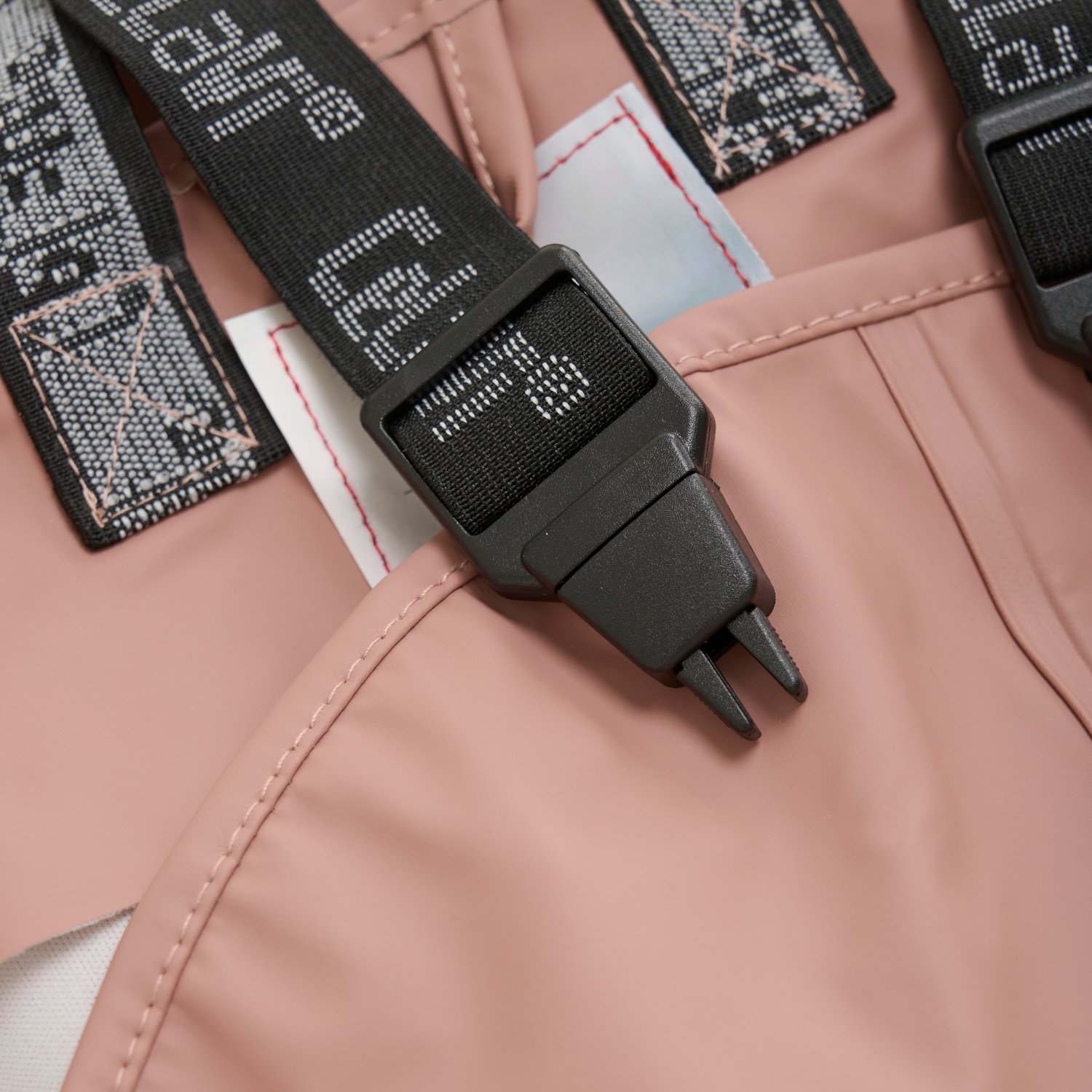 Setul este disponibil fie sub formă de salopetă cu bretele elastice reglabile (mărimea 70-100) sau pantaloni de ploaie cu talie elastică (mărimea 110-140).