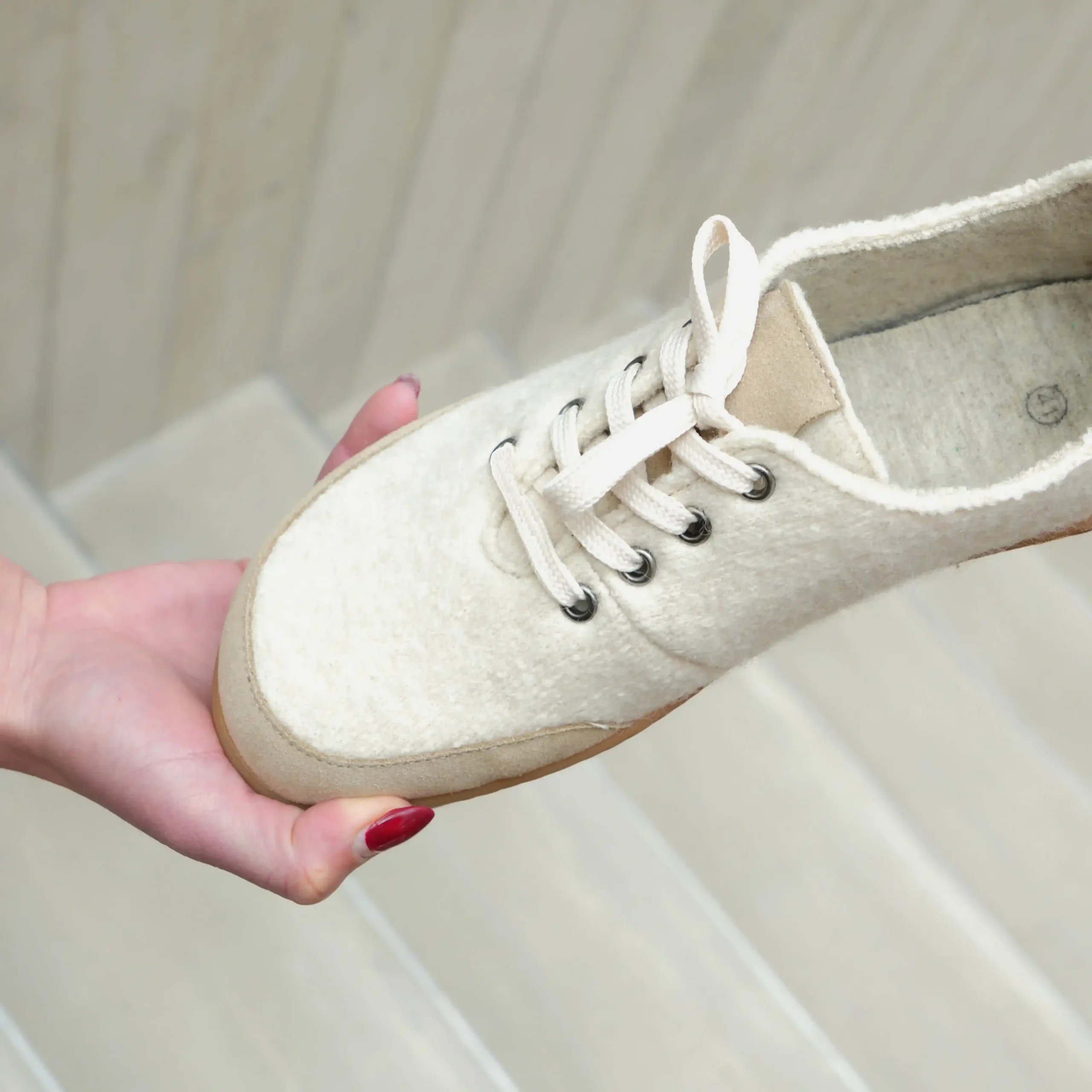 Partea superioară este confecționată din lână fiartă moale și respirabilă, care se mulează confortabil pe picior, asigurând în același timp un climat echilibrat al piciorului. Talpa subțire și antiderapantă din cauciuc permite o libertate maximă de mișcare și promovează o mișcare naturală. Întăriturile din piele din zona degetelor și a călcâiului oferă stabilitate suplimentară fără a restricționa flexibilitatea. Fie că este vorba de purtarea de zi cu zi, la birou sau pentru plimbări relaxante, acești teniși desculți oferă combinația perfectă de funcționalitate, naturalețe și design modern.