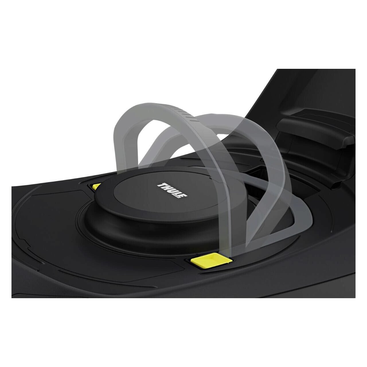 Fixarea bazei Thule Alfi în mașină este simplă, datorită tehnologiei noastre AcuTight, care permite activarea sigură numai atunci când ambii conectori sunt cuplați. Ascultați doar un clic; Acest sunet indică faptul că baza este închisă corect și fixată în siguranță