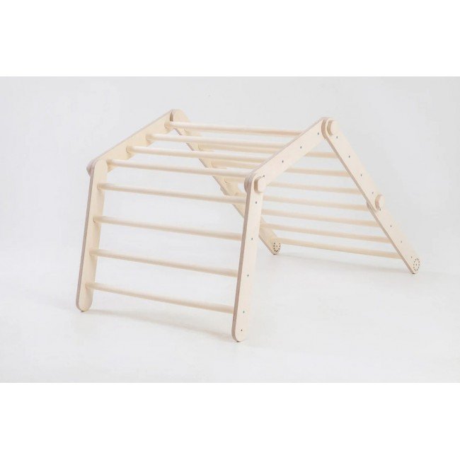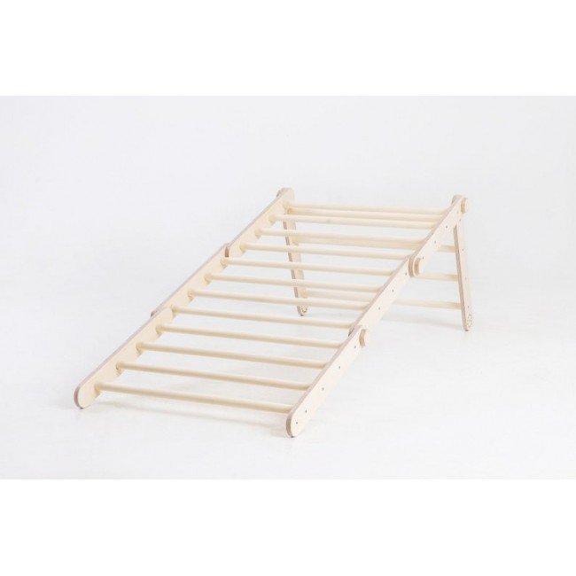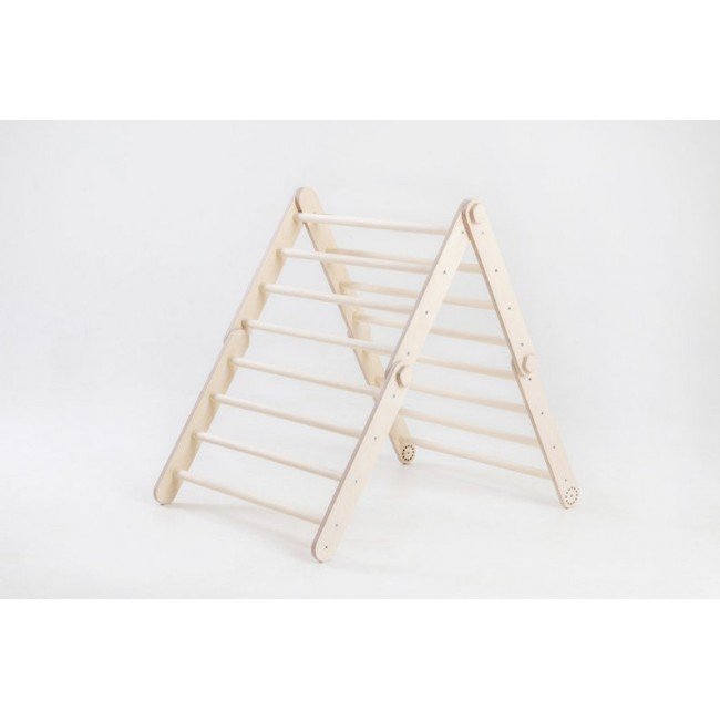 Medicul pediatru Emmi Pikler, creatoarea acestei piese de echilibru si invatare prin joc, era de parere ca un copil, pentru a prinde incredere in fortele proprii, trebuie sa devina initiator, explorator si autodidact in joaca. Astfel, un copil caruia i se permite miscarea libera, este mai atent la imprejurimi si senzatii. Copilul invata cum sa cada in siguranta, cum sa se ridice corect si cum sa se bucure de miscarea fizica, atat de importanta in dezvoltare. Triunghiul se pliaza si placa este reversibila, are o parte de catarare si cealalta este tobogan. Nu lasati copii nesupravegheati sa foloseasca triunghiul.