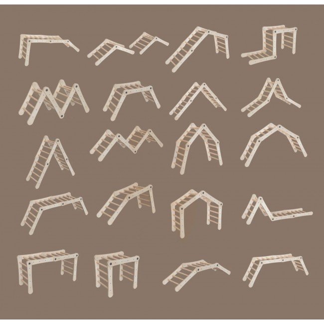 Triunghiul de cățărare transformabil este capabil să ajusteze poziția segmentelor la fiecare 30 de grade, peste 20 moduri unice de montaj.